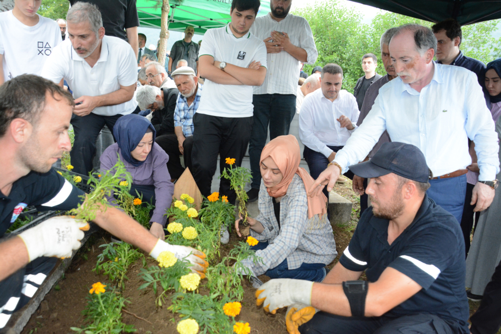 Mustafa Demir’in defininin ardından Trabzon Büyükşehir Belediyesi’nin getirdiği çiçekler eski Bakanın kızları tarafından mezarının üzerine dikildi. Mustafa Demir’in kızları babalarının üzerine çiçekleri dikerken gözyaşlarına hakim olamadılar.