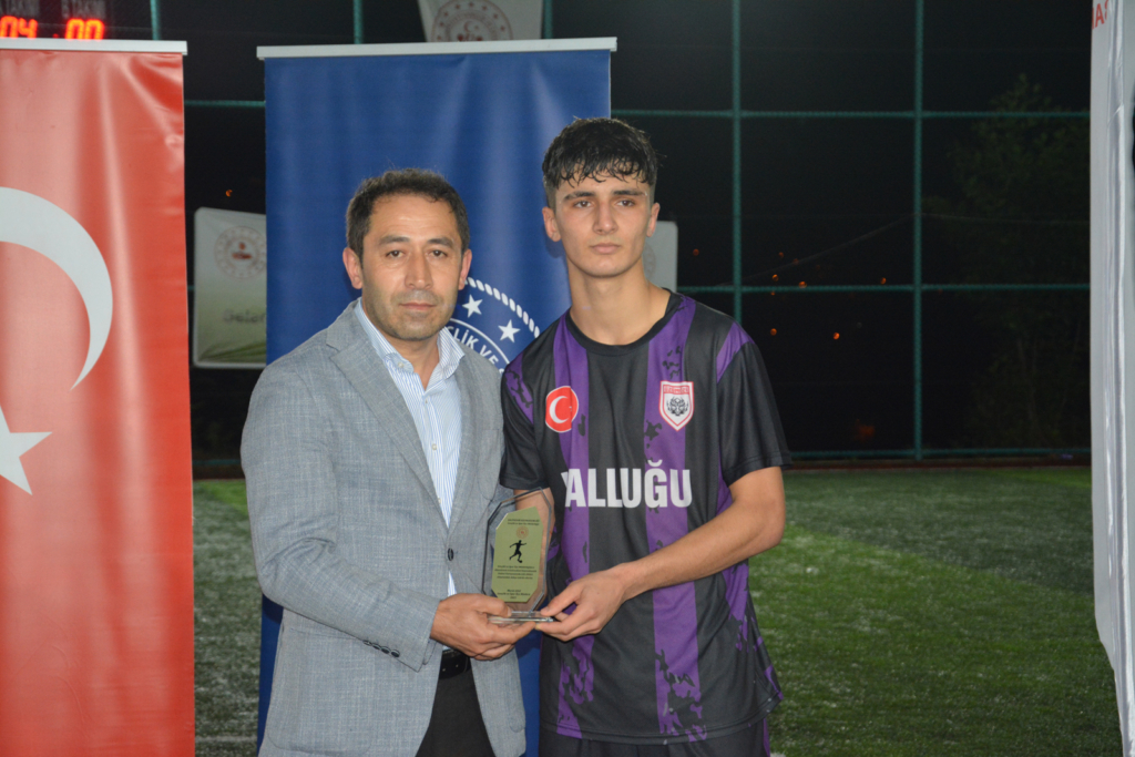Turnuvada gol kralı olan Üzümözü takımı oyuncusu Mert Demirbaş’a da Şalpazarı Kaymakamlık SYDV Müdürü Hurşit Akgün kupa verdi.